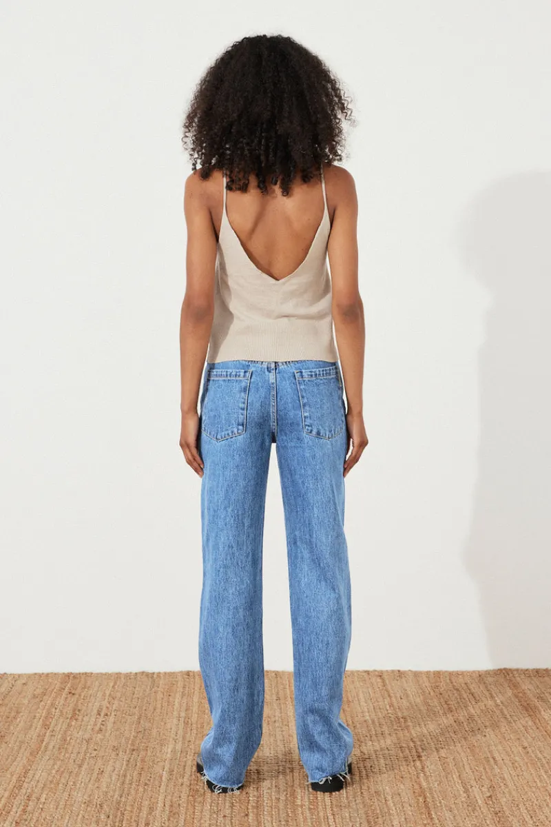 The Blue Wash Recycled Denim Jean by Zulu & Zephyr is a flattering straight-leg everyday essential. New for 2024, the Denim features a classic 5-pocket design, brushed metal hardware, ZZ signature vegan jacron patch, and a branded pip label in a soft yet rigid cotton. This relaxed fit Jean includes a raw hem, allowing you to customize your leg length. Size down for a more high-waisted fit or opt for your standard size for a more low-slung look.