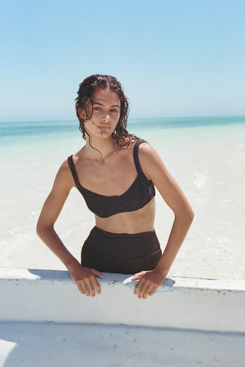 The Bra Cup Top is a Zulu & Zephyr collector item. This design has been a brand favorite for its complimentary cup shape that suits every body. Made from Signature ECONYL® ribbed lycra, this top will become an essential all summer long. Featuring a soft underwire bust cup with adjustable straps. Match back with the new Signature High Full Brief for a distinctively classic look.