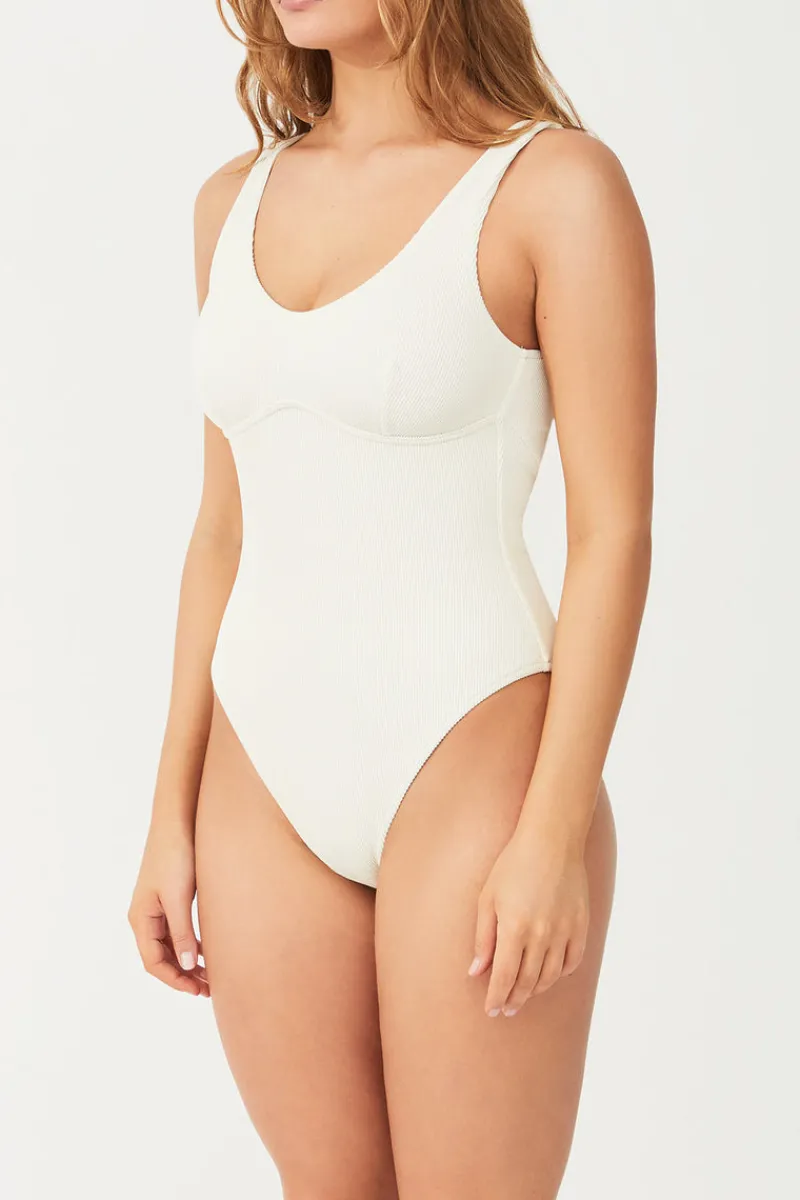 The Bralette One Piece by Zulu & Zephyr is made from sustainable ECONYL® ribbed lycra, offering a subtle soft bra with a slimline modest body. Featuring a soft bust cup without wire, fixed straps and a slightly high cut leg line.