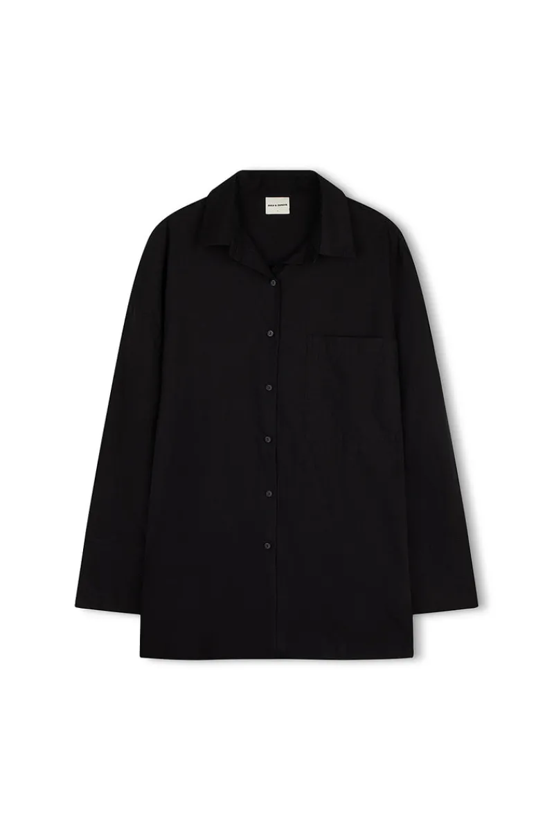 The Classic Shirt – Black by Zulu & Zephyr features a traditional shirt collar and long sleeves with cuff details. Designed with a relaxed, oversized fit, this shirt is made from a soft, lightweight fabric and finished with branded corozo buttons down the centre. Perfect for pairing with denim for an everyday look.