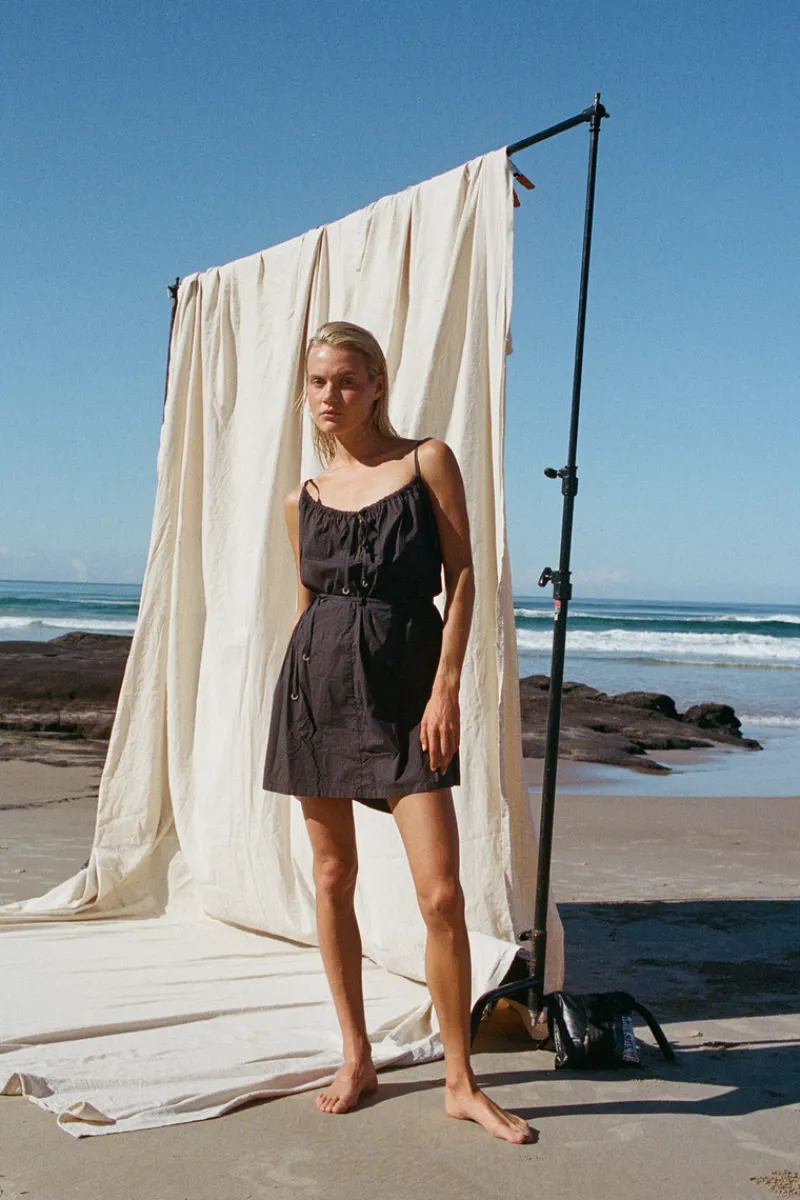 The Cotton Poplin Dress – Black by Zulu & Zephyr is a lightweight mini in a soft touch poplin.