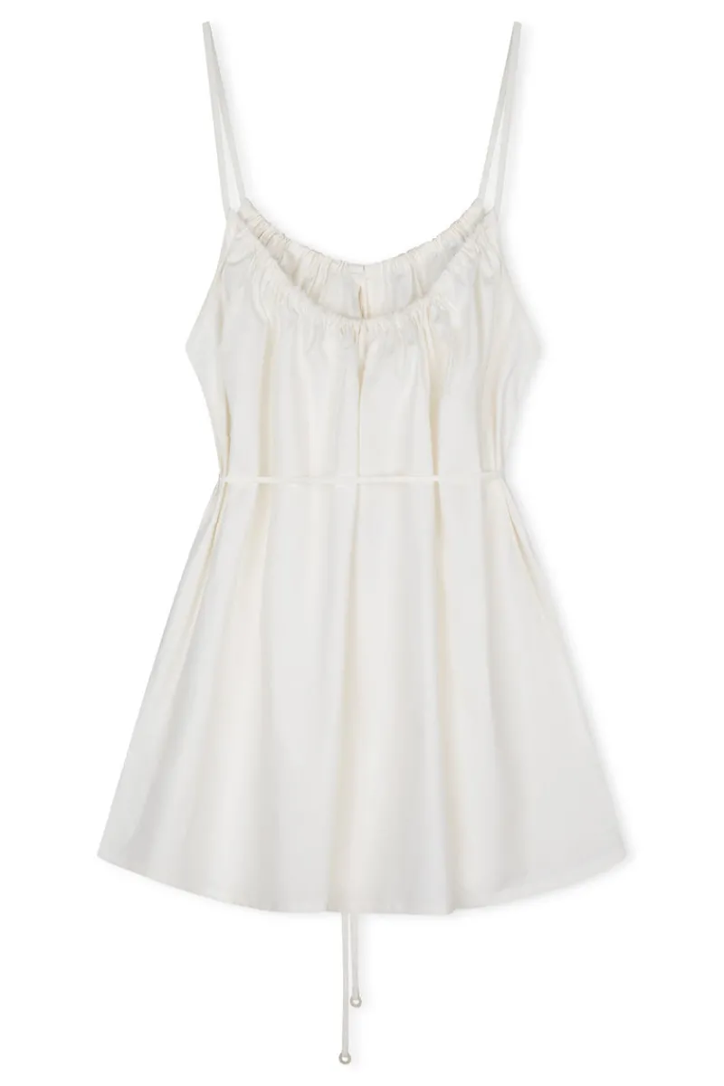 The Cotton Poplin Dress – Milk by Zulu & Zephyr is a lightweight mini in a soft touch poplin. Adjust the rouching fabric to personalise the fit, ensuring a perfect, flattering look that effortlessly takes you from beach to bar.