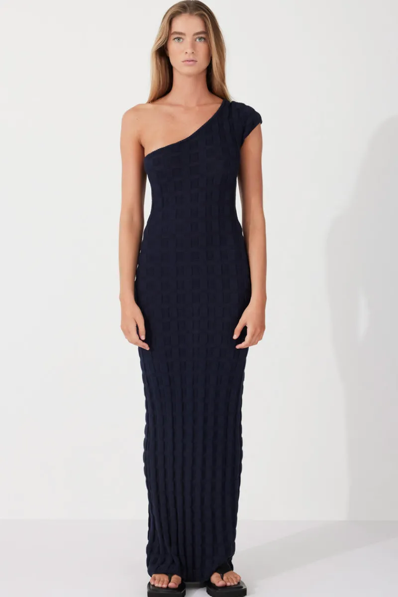 The Midnight Textured Knit Dress by Zulu & Zephyr is a standout maxi, designed for transeasonal dressing. Featuring a flattering one shoulder design, is slim fitting and intricately knitted. Wear with boots or for a casual look, the Zulu & Zephyr – Black Thong.