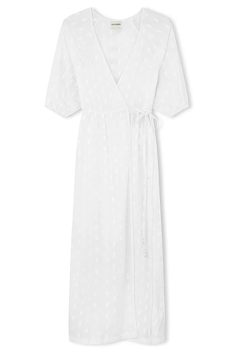 The Milk Textured Wrap Dress by Zulu & Zephyr is a feminine wrap dress offering an adjustable fit, midi length, and voluminous sleeves, in a lightweight semi-sheer textured dobby cotton. Pair this with the essential Zulu & Zephyr Thong – Black to complete the outfit.