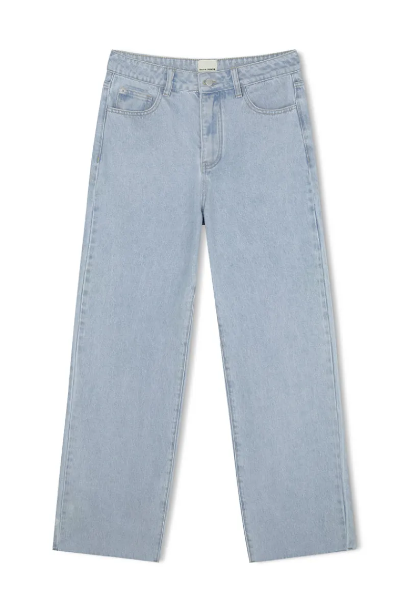 The Recycled Cotton Mid Rise Jean – Light Wash by Zulu & Zephyr is a flattering, straight-leg essential for everyday wear. Featuring a classic 5-pocket design, brushed metal hardware, ZZ’s signature vegan jacron patch, and a branded pip label – this jean is crafted from soft yet rigid recycled cotton. For a firm high-waisted fit, size down.