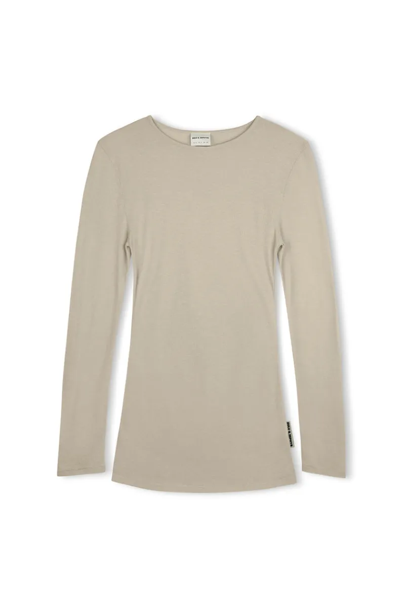 The Rib Hemp Jersey Long Sleeve Top – Husk by Zulu & Zephyr makes part of the latest basics collection. The top boasts a slim fit, ribbed binding crew neckline, long length sleeves and is made from a soft, breathable hemp-cotton blend. Its lightweight fabric and versatile design make it an essential wardrobe staple that pairs effortlessly with any outfit.