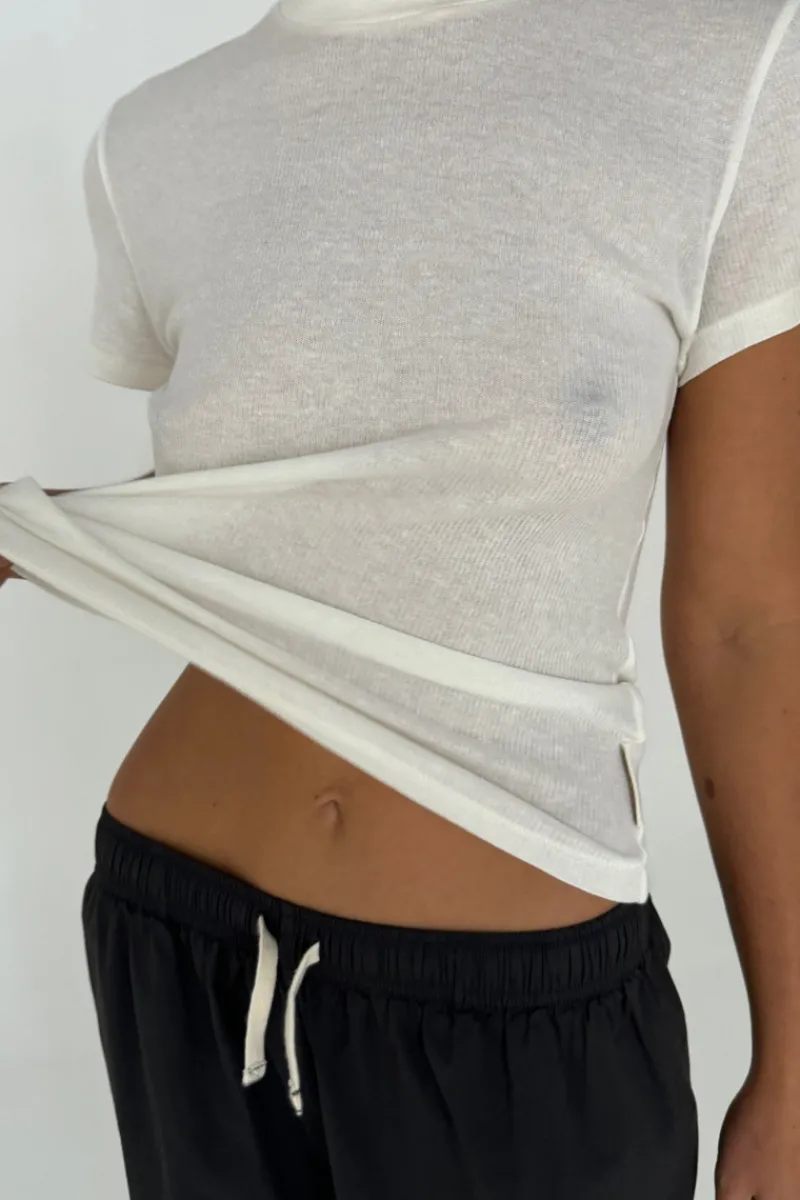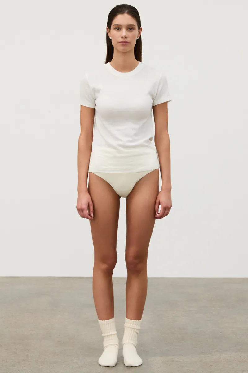 The Rib Hemp Jersey T-Shirt – White by Zulu & Zephyr makes part of the latest basics collection. This classic T-Shirt boasts a slim fit, ribbed binding crew neckline, short sleeves and is made from a soft, breathable hemp-cotton blend. Its lightweight fabric and versatile design make it an essential wardrobe staple that pairs effortlessly with any outfit.