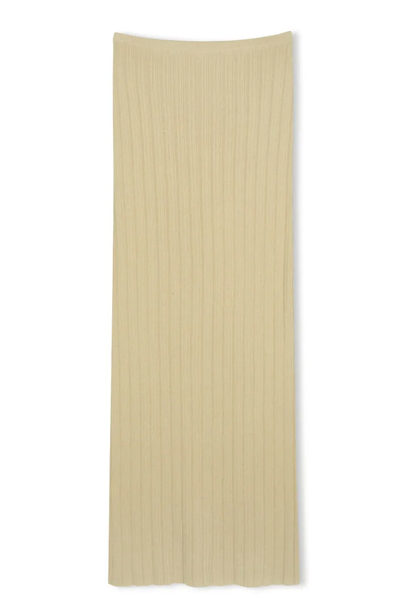 The Sand Rib Knit Skirt Zulu & Zephyr features a straight-column silhouette in a long-length style. Wear the soft rib knit skirt low on the hip or slightly above, adjusting with the comfortable elasticated waistband. Pair with the Sand Rib Knit Top for a styled look.