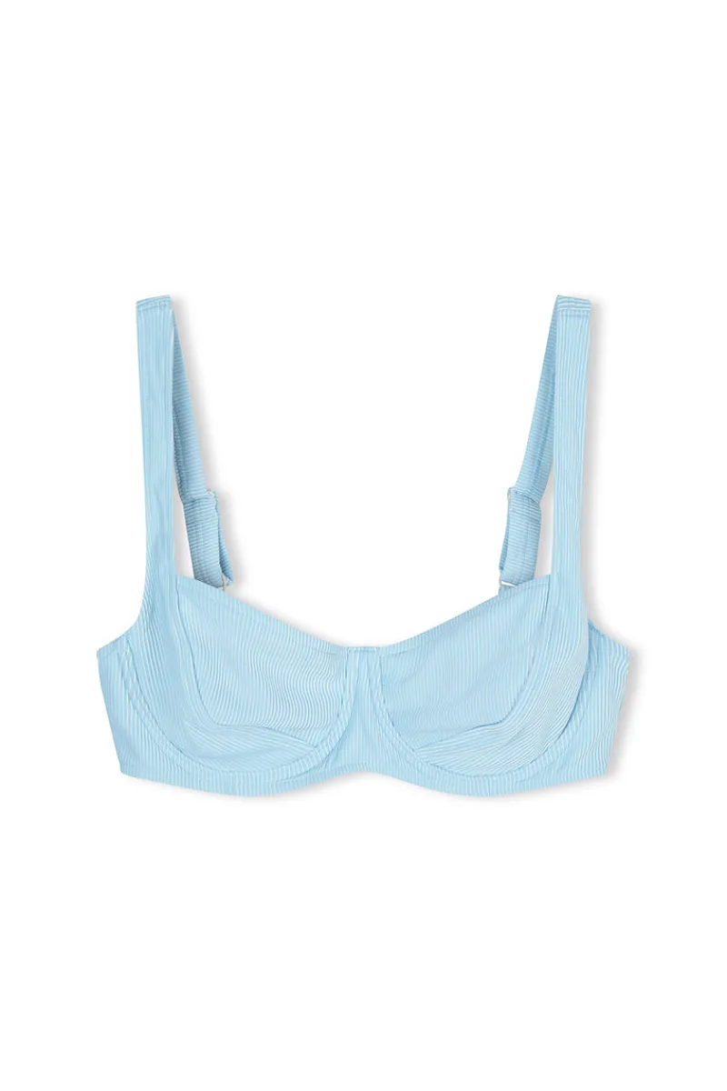 The Signature Stripe Bra Cup – Shallow Blue offers gentle support with a soft bust cup, underwire, and wide adjustable straps. Thoughtfully designed, the bust seam detailing contours and flatters all cup sizes, while the back clasp ensures easy wearability. This style debuts a luxurious two-tone ribbed fabric, adding a refined touch to the Signature core collection.