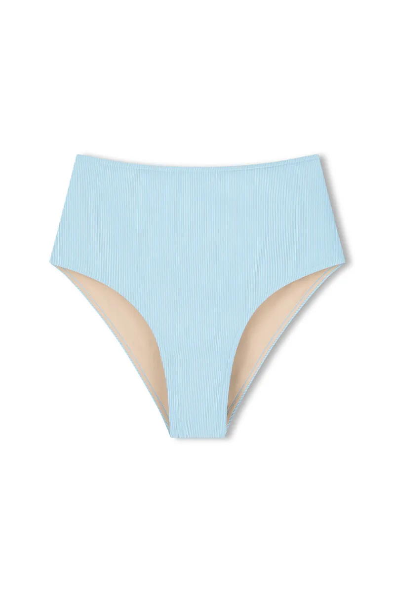 The Signature Stripe High Full Brief – Shallow Blue is a universally flattering fit. The high-rise brief provides full coverage around the hips while maintaining a sleek, bikini-style silhouette. The luxurious two-tone ribbed fabric introduces a touch of refinement to the Signature swim collection.