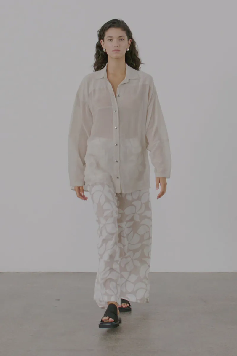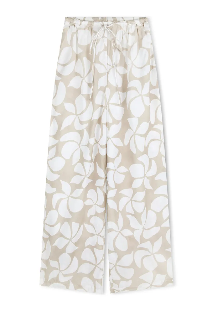 The Silver Lilo Organic Cotton Pant by Zulu & Zephyr combines comfort with a luxurious soft touch and a unique hand-painted print. Designed with an elasticated waistband, a functional drawcord, and a split detail at the side seam hem, these straight-leg pants offer a relaxed yet stylish silhouette. Ideal for making a statement while staying effortlessly comfortable, they pair perfectly with the Silver Sheer Textured Shirt for a chic resortwear look.