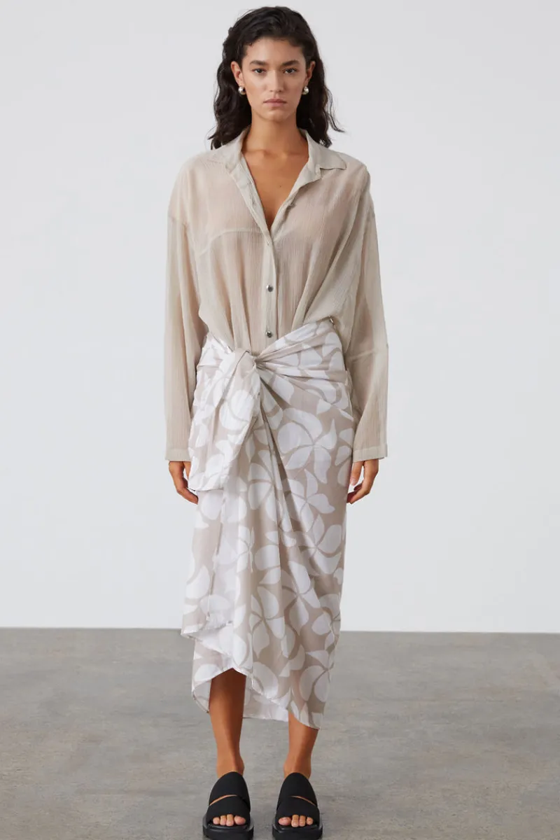 The Silver Lilo Organic Cotton Pareo by Zulu & Zephyr offers a luxurious, soft feel paired with a unique hand-painted print. This semi-sheer cotton sarong is a versatile staple, perfect for your swim cover-up collection. Wear it in multiple ways for effortless style and comfort during your beach or resort outings.