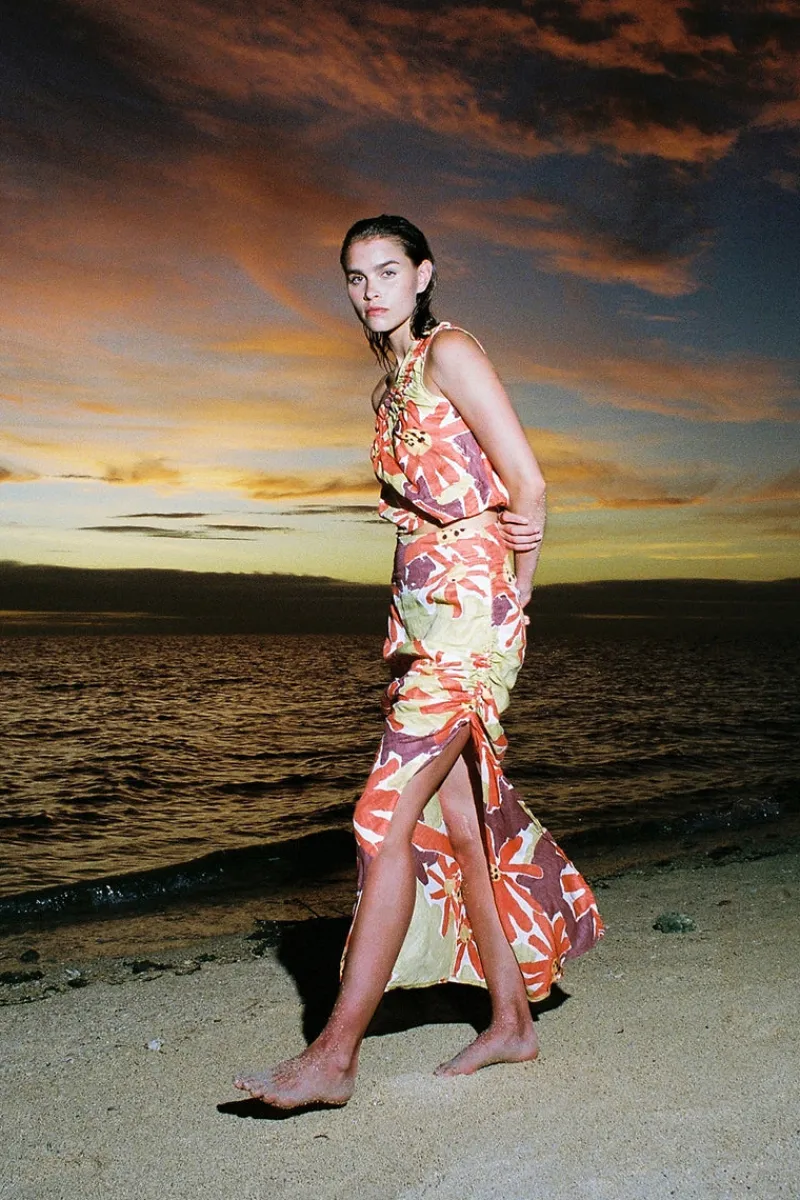 The Wildflowers Rouched Linen Skirt by Zulu & Zephyr is designed from a soft lightweight European flax linen, in a playful floral hand-drawn print. The full-length Skirt features a rouched side seam and asymmetric waist and hem detail. Pair with the matching Wildflowers Rouched Linen Top for a coordinated set.