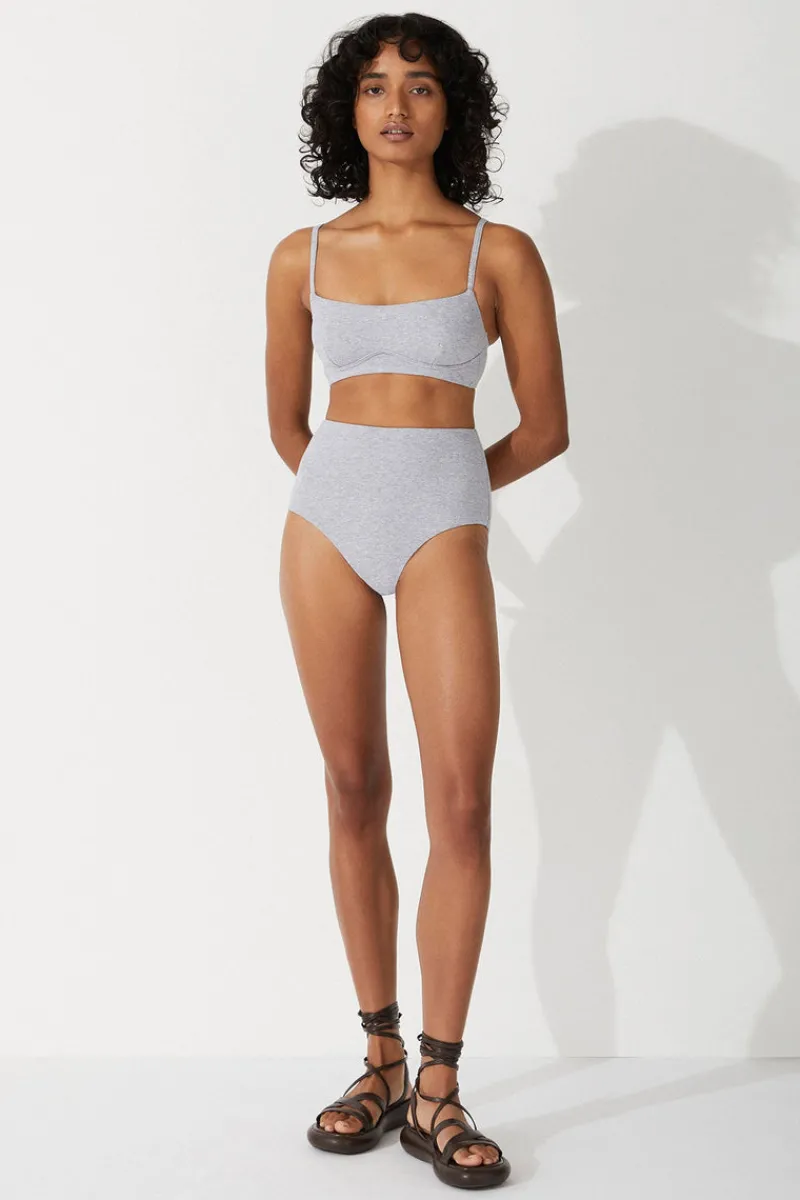 The Grey Marle Waisted Full Brief by Zulu & Zephyr is a high-rise, waisted style with thick sides and modest rear coverage, in a soft cotton jersey swim fabrication. The simplicity and comfort of the piece gives the option to also wear it as an undergarment. Wear this with the Grey Marle Bralette for a coordinated set.