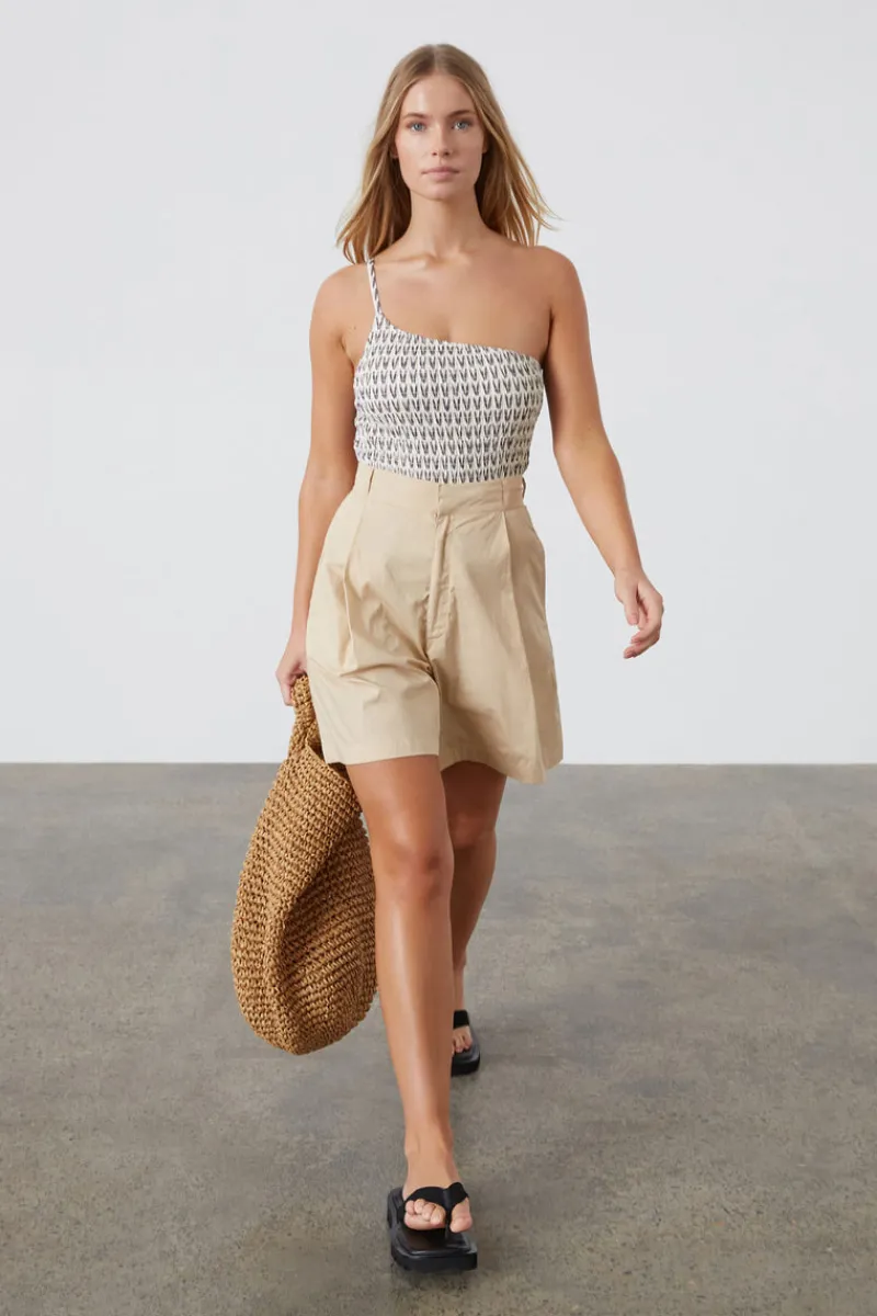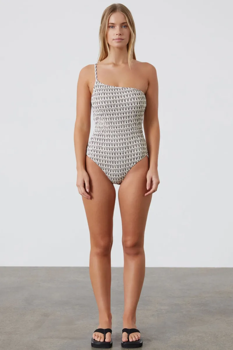 The Pecan Asymmetric One Piece by Zulu & Zephyr features intricate smock details on the outer layer adding a touch of texture and depth. Crafted from a smooth buttery fabric, it ensures both comfort and durability. The custom pecan print is paired with flat internal lining and an asymmetric adjustable strap enhancing shape and support.