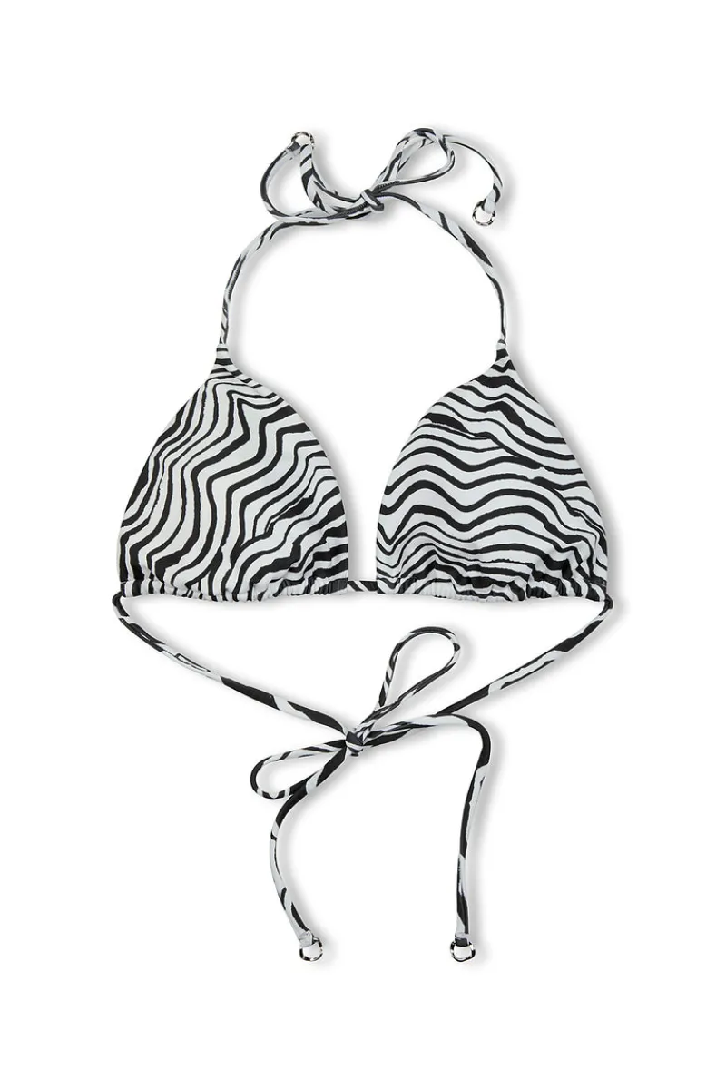 The Ripple Stripe Halter Top by Zulu & Zephyr is designed for versatile styling with an adjustable soft bust without padding or hardware and thin straps. Play with the many ways it can be tied — straight up around the neck, crossed over, or at centre front to convert into a bandeau. In a soft luxe smooth, hand-painted custom print, pair with the Ripple Stripe Curve Brief for a coordinated set.