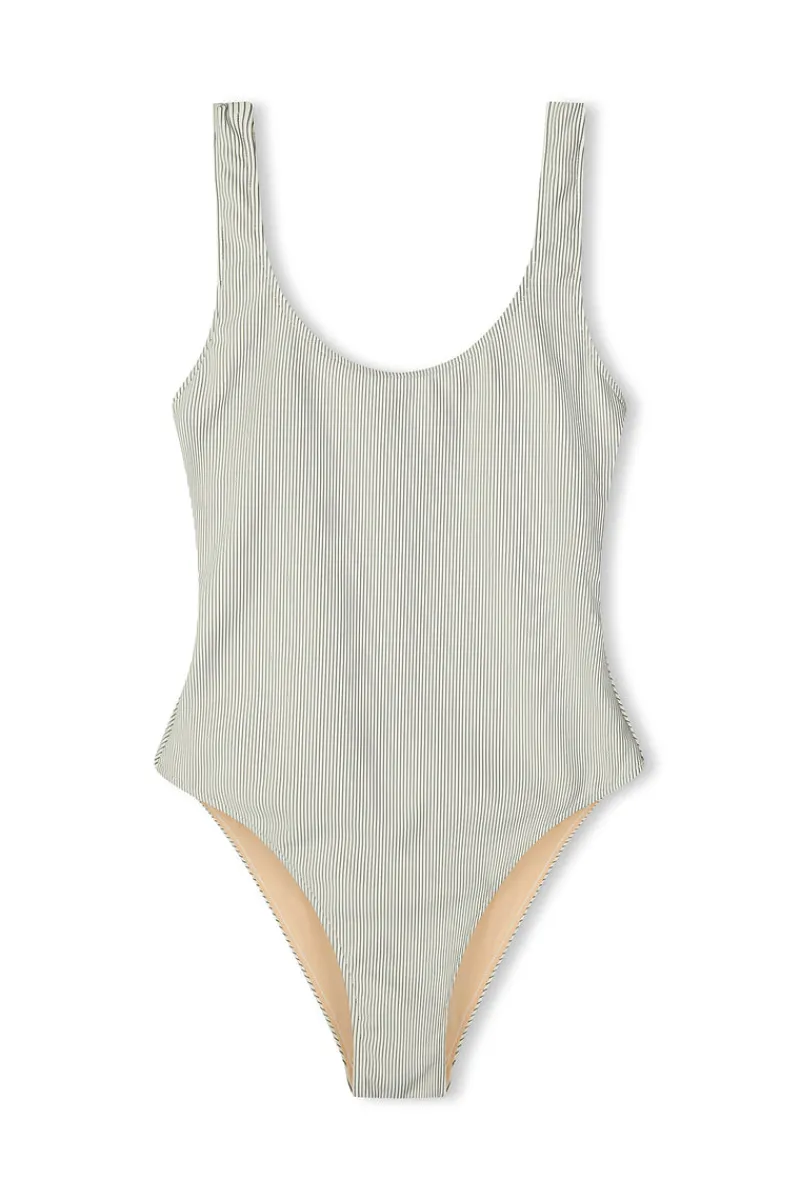 The Signature Stripe Scooped Back One Piece – Coconut offers a timeless silhouette with a flattering fit. Featuring a built-in shelf bra for added support, wide fixed straps, and a low scoop back. The luxurious two-tone ribbed fabric introduces a touch of refinement to the Signature swim collection.