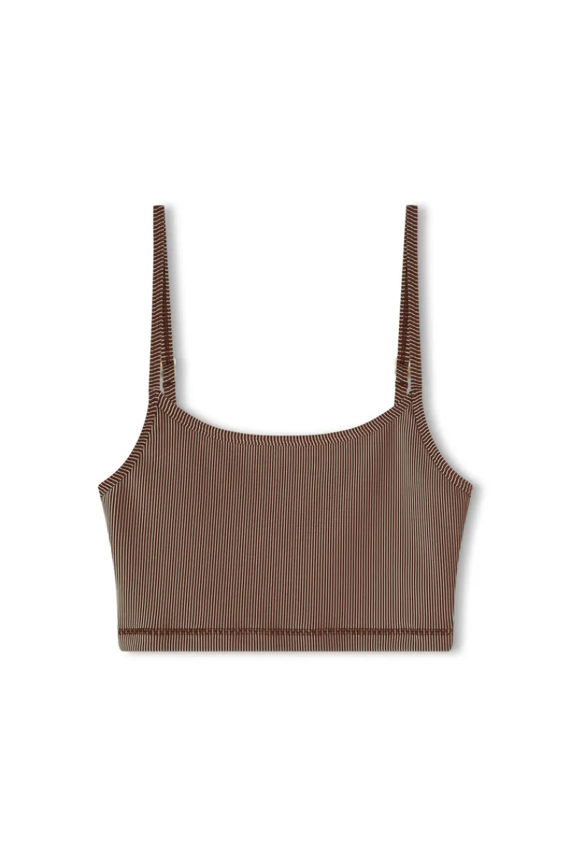 The Stripe Rib Singlet – Chocolate by Zulu & Zephyr features a scoop neckline, bind adjustable straps with an internal shelf bra for comfort and support. The two-tone ribbed crop is designed for high-endurance activity, water sports, or simply as luxury everyday athleisure wear, and forms part of the new ZZ Sport range. Pair yours with the Rib Short to wear this functional piece from pilates to lunch.